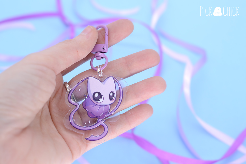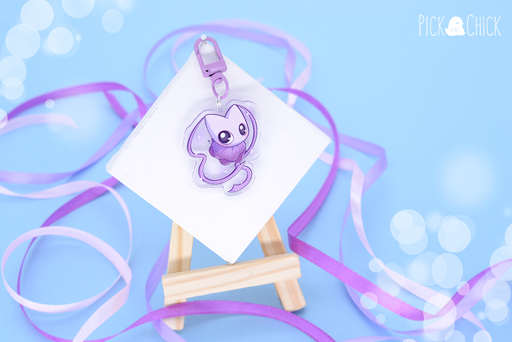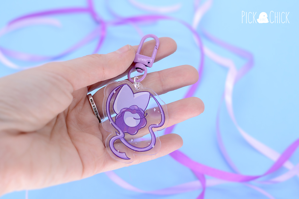 - Cierre de mosquetón de un tono lila a juego con el diseño del llavero