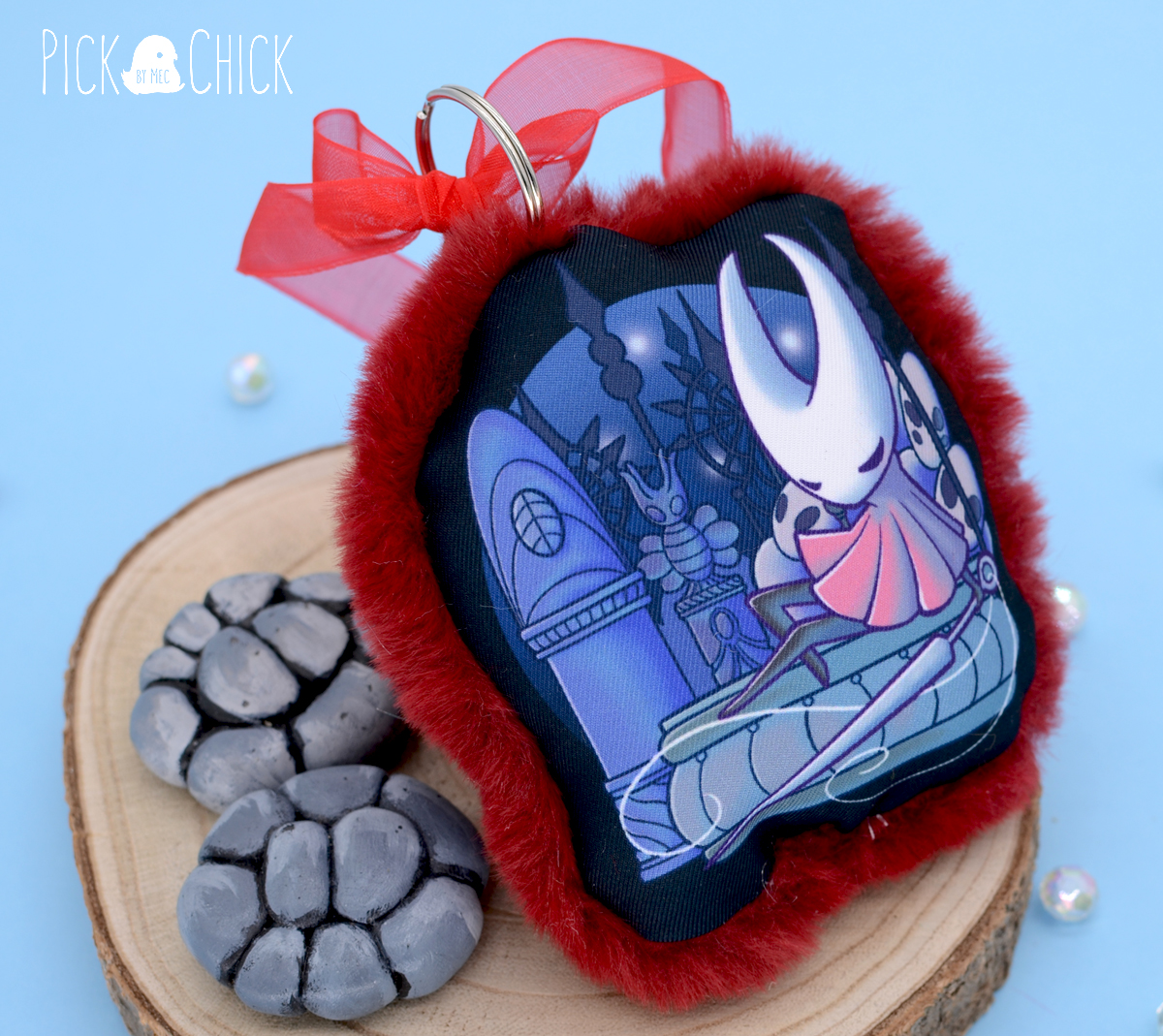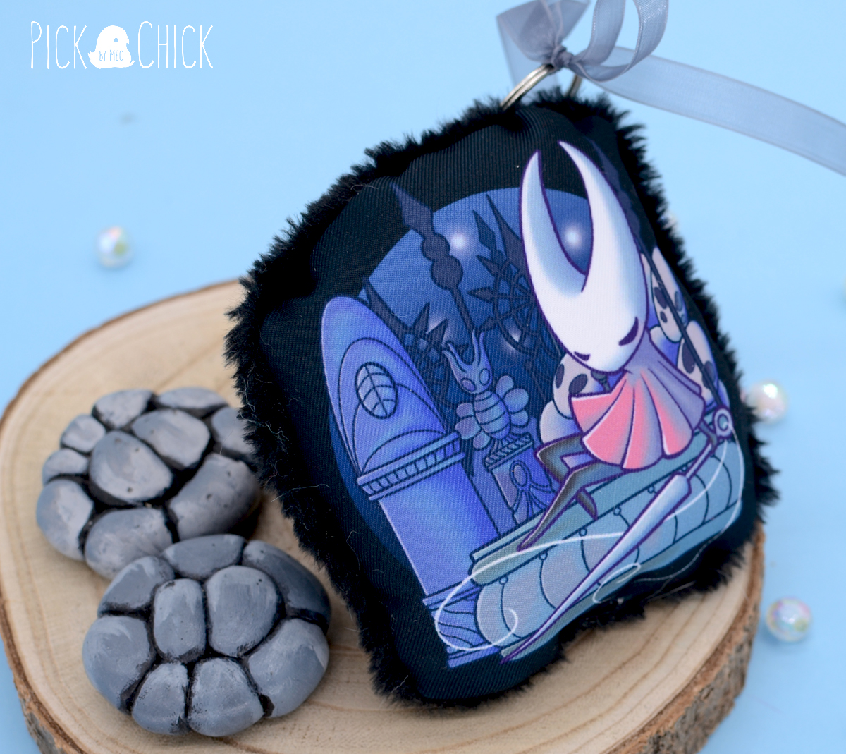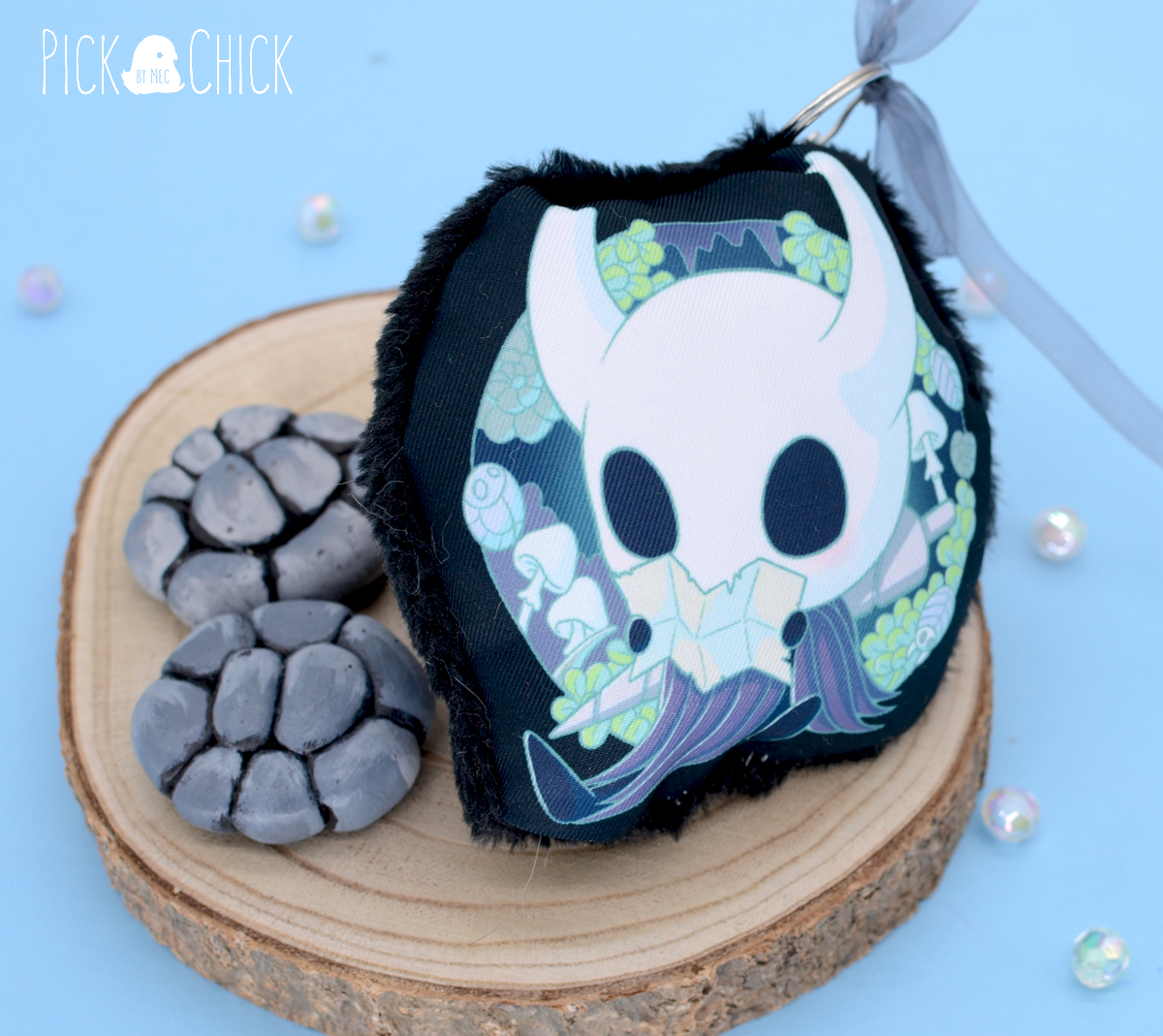 Llavero de tela inspirado en Hollow Knight. Especificaciones: