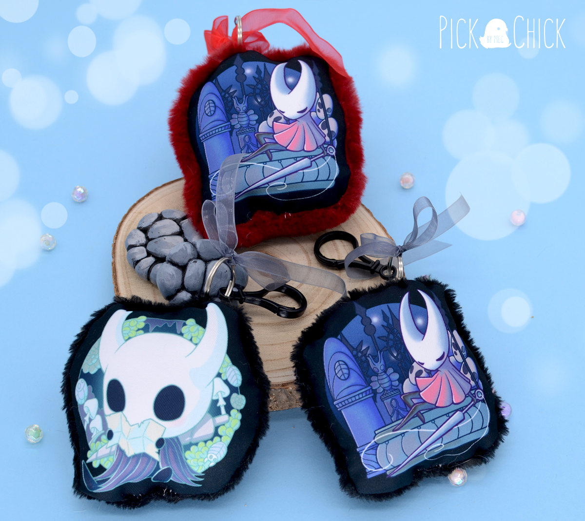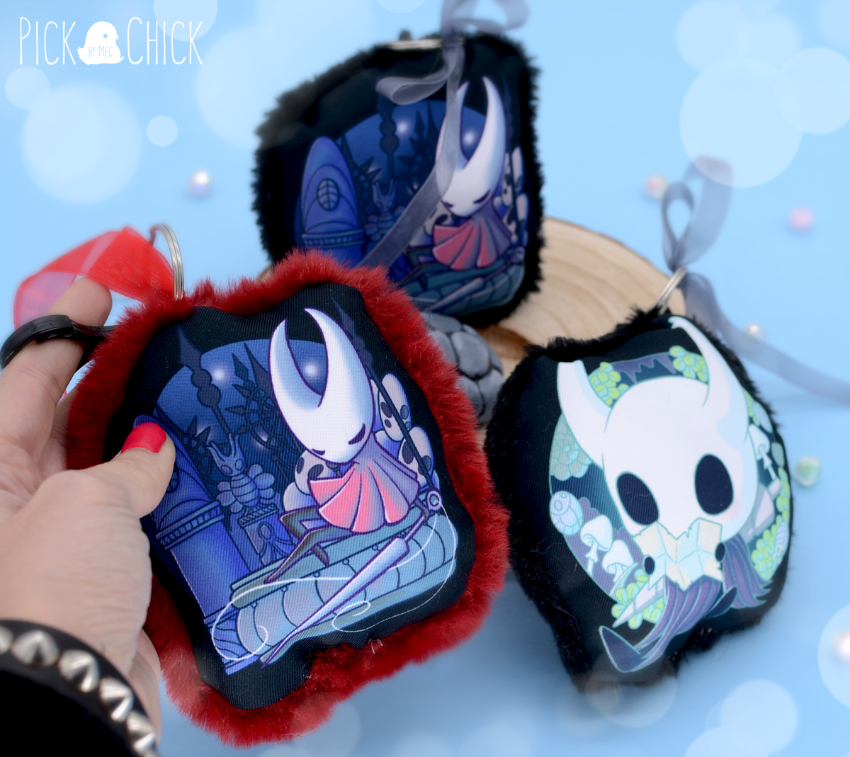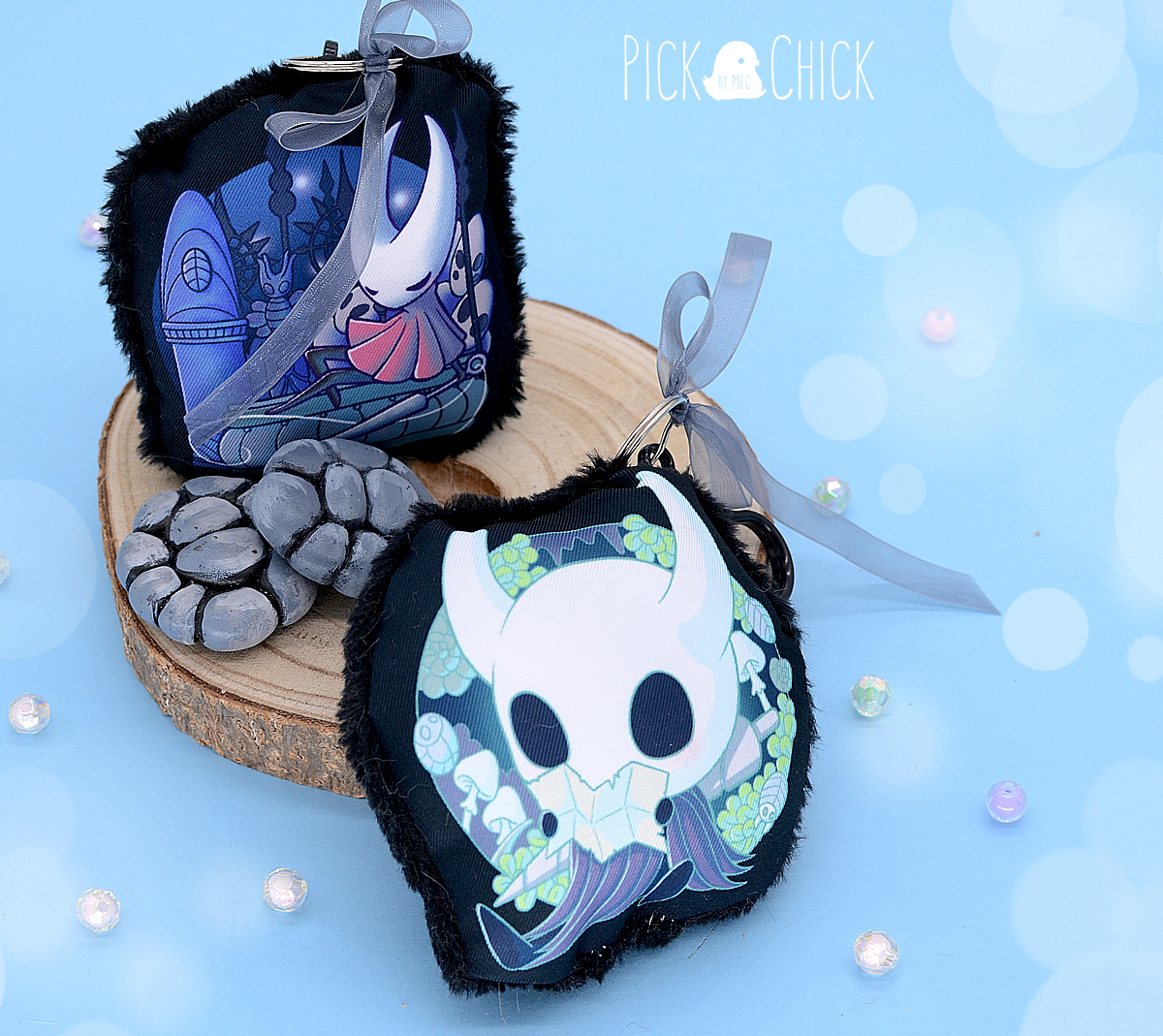Llavero de tela inspirado en Hollow Knight. Especificaciones: