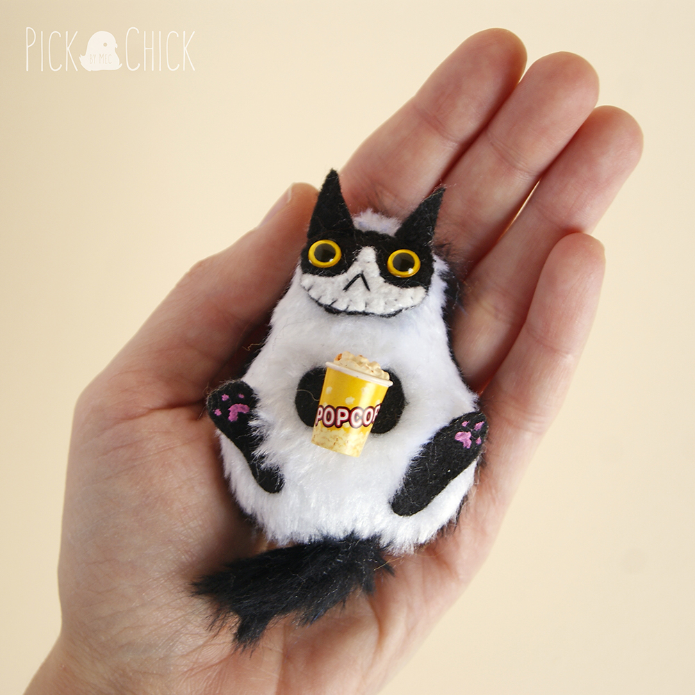 Peluche en miniatura de nuestro Fat Cat, un gato gordo llamado Maurice (puedes pedirlo personalizado). Aunque el original es blanco, estos pequeños se encuentran disponibles en muchísimos colores y diseños distintos, por lo que seguro que encuentras alguno parecido a tu gato real. Y si no, siempre puedes pedir que haga uno personalizado basado en fotos que me envíes de tu mascota. Son muy chiquitines y adorables, ideales para decorar cualquier rincón. Aunque si lo deseas puedes encargar que le añadamos una argolla para usarlo de llavero y llevarlo siempre contigo. Su tamaño también es perfecto para usarlo como mascota para muñecas de escala 1:6 como Blythe, Barbie o Pullip.