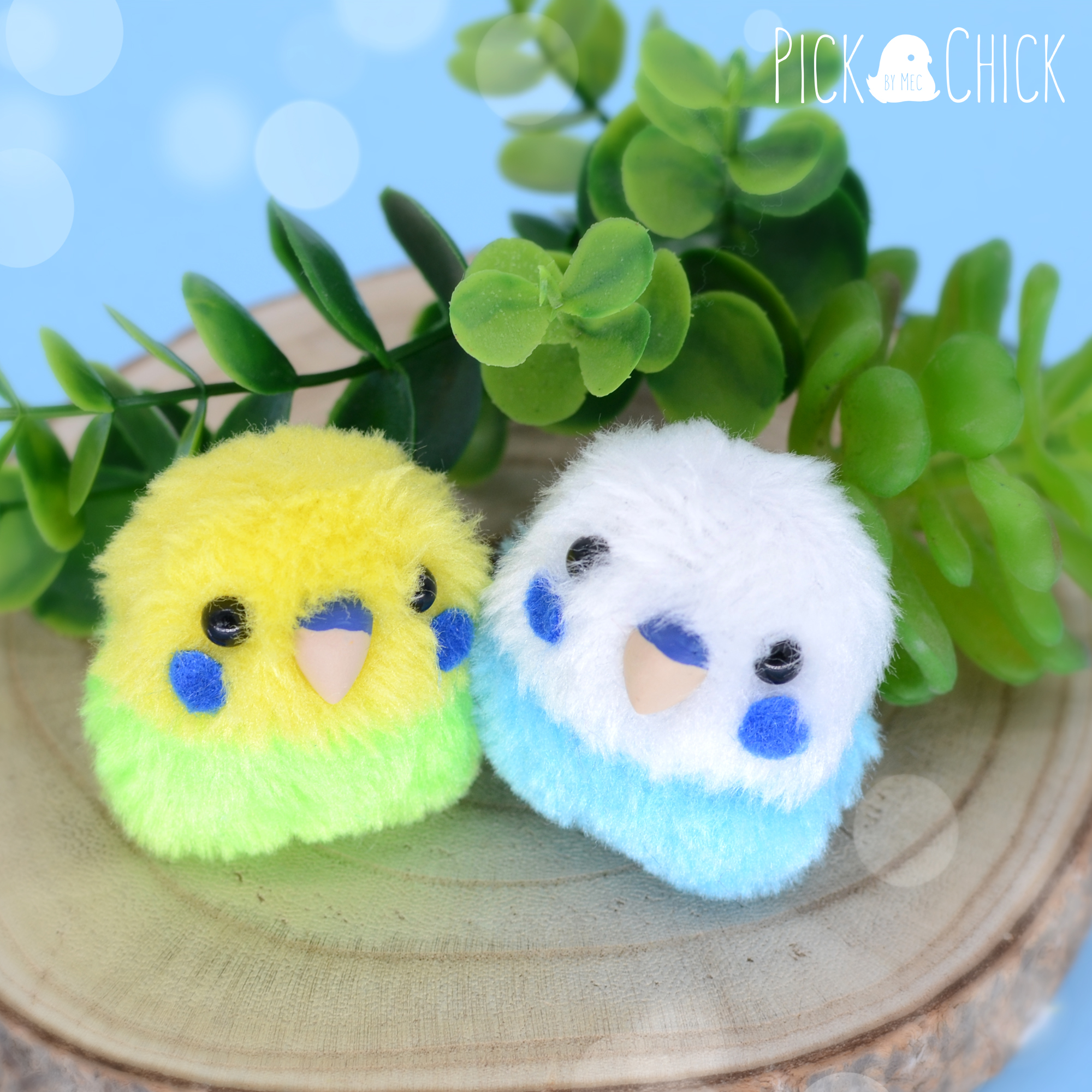 Peluches en miniatura de periquitos, varios modelos disponibles.