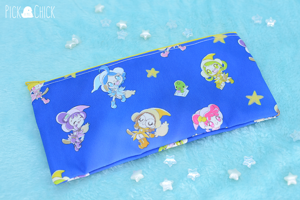 Estuche de estilo kawaii cosido completamente a mano y con un diseño inspirado en la serie de anime Magical Doremi. Las pequeñas aprendices de bruja más queridas del mundo otaku son las protagonistas de este estampado tan adorable. Aparecen las 5 volando con su escoba sobre un cielo nocturno y estrellado. Ilustradas en estilo kawaii con el traje original de la primera temporada, y acompañadas también de Majorica en su pala. Lleva la magia con Doremi, Aiko, Hazuki, Onpu y Momoko, y transporta tus herramientas de dibujo allá donde vayas con este bonito estuche. Está completamente cosido a mano por mi, en tela de sarga gordita, suave y resistente, e impresión de gran calidad, con colores brillantes y contornos bien definidos.